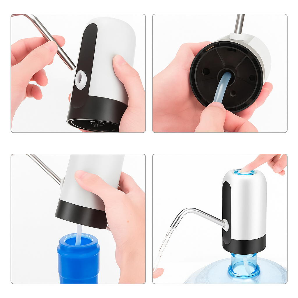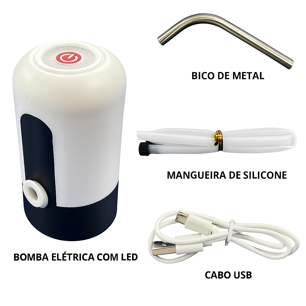 Diga adeus ao esforço de virar galões pesados! A Bomba Elétrica de Água transforma qualquer garrafão em uma fonte prática e moderna de hidratação. Com apenas um toque, ela bombeia a água de forma rápida, silenciosa e sem desperdício.