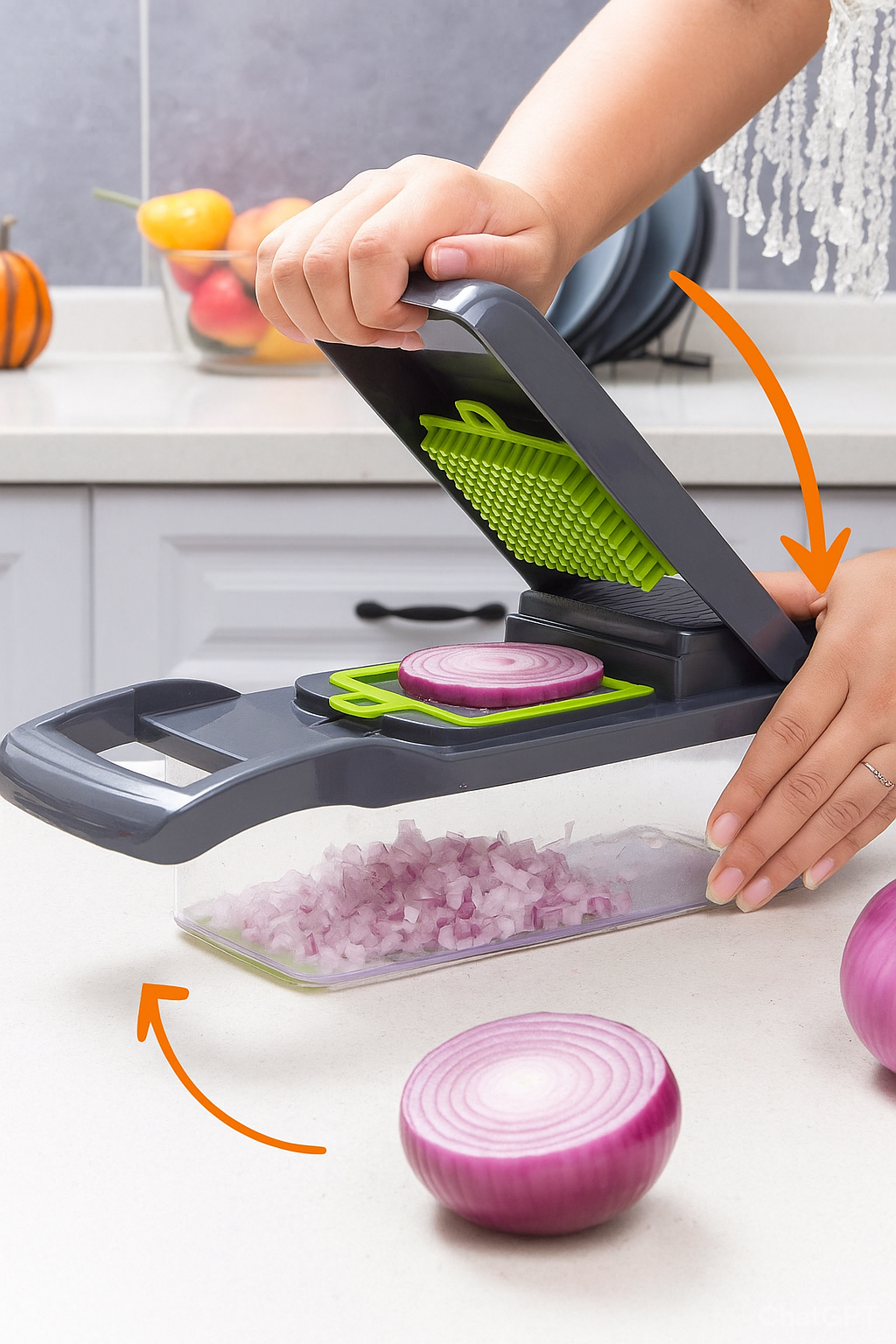 Sim! Ele possui design ergonômico, apoio firme e lâminas afiadas que cortam os alimentos sem exigir força excessiva, reduzindo riscos de acidentes.