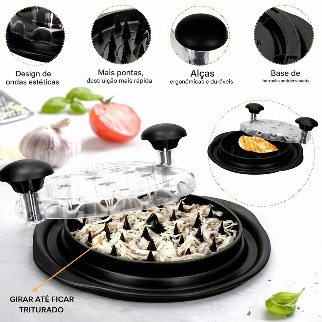Transforme o preparo das suas receitas com o desfiador de frango prático e eficiente. Com design inteligente e lâminas internas que agilizam o processo, você desfia o frango de forma rápida, uniforme e sem sujeira. Ideal para quem busca economizar tempo na cozinha e manter a praticidade no dia a dia. 🍗✨