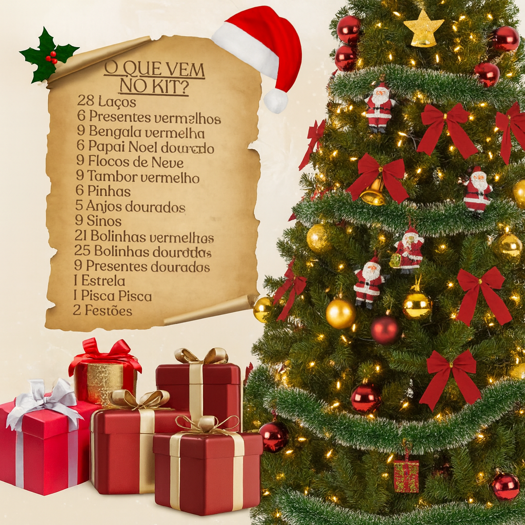 🎁 132 enfeites inclusos: bolas, laços, acessórios e detalhes que deixam sua árvore pronta e impecável.