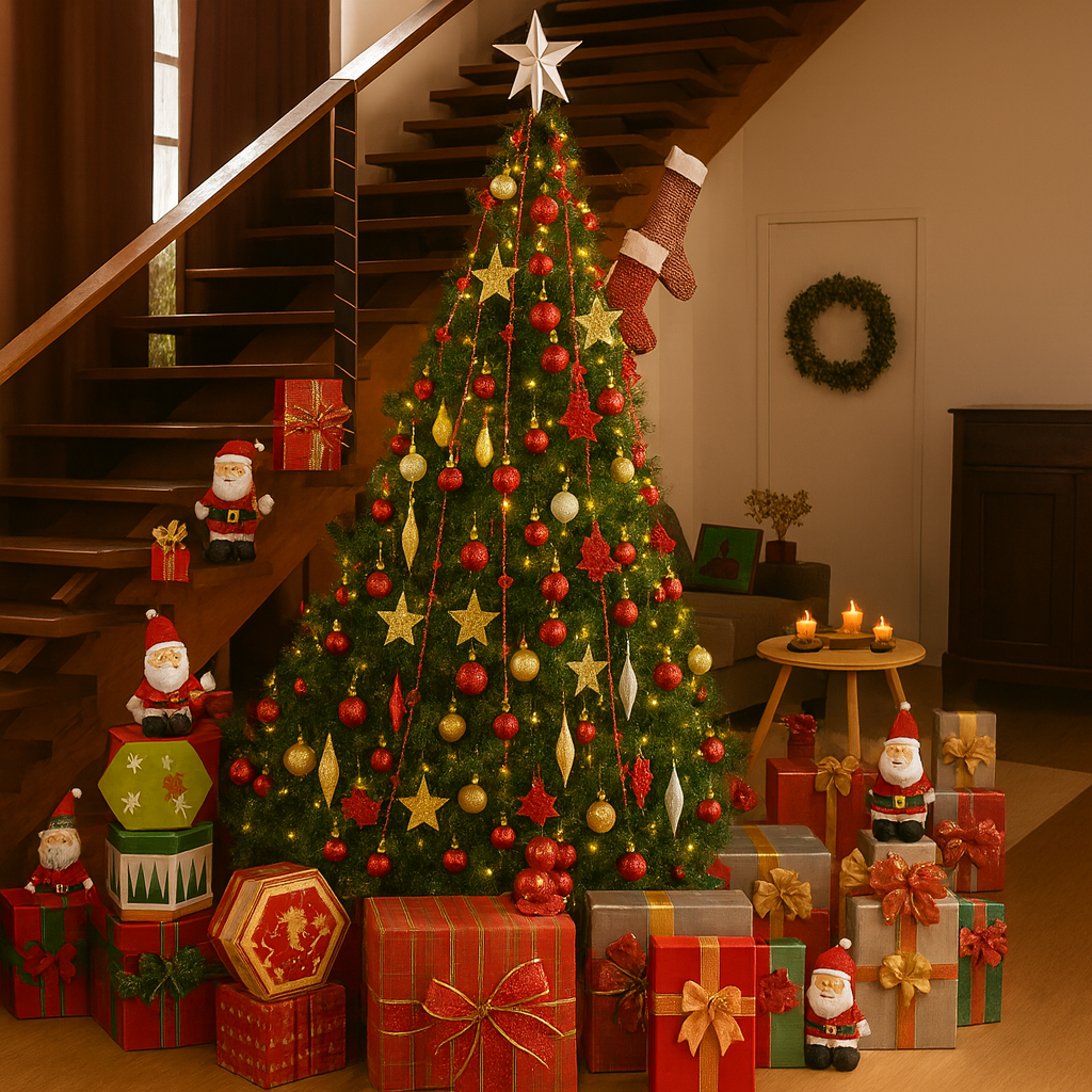 A Árvore de Natal 2,10m com 132 enfeites é a escolha perfeita para quem busca um Natal majestoso, completo e inesquecível. Com quase dois metros e meio de altura, ela impressiona por sua presença elegante e visual sofisticado — o tipo de árvore que se torna o grande destaque da decoração.