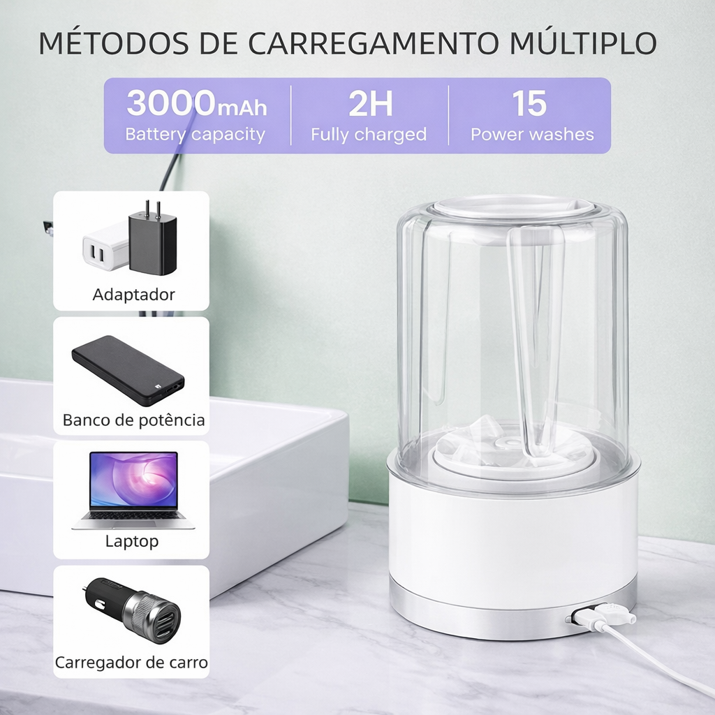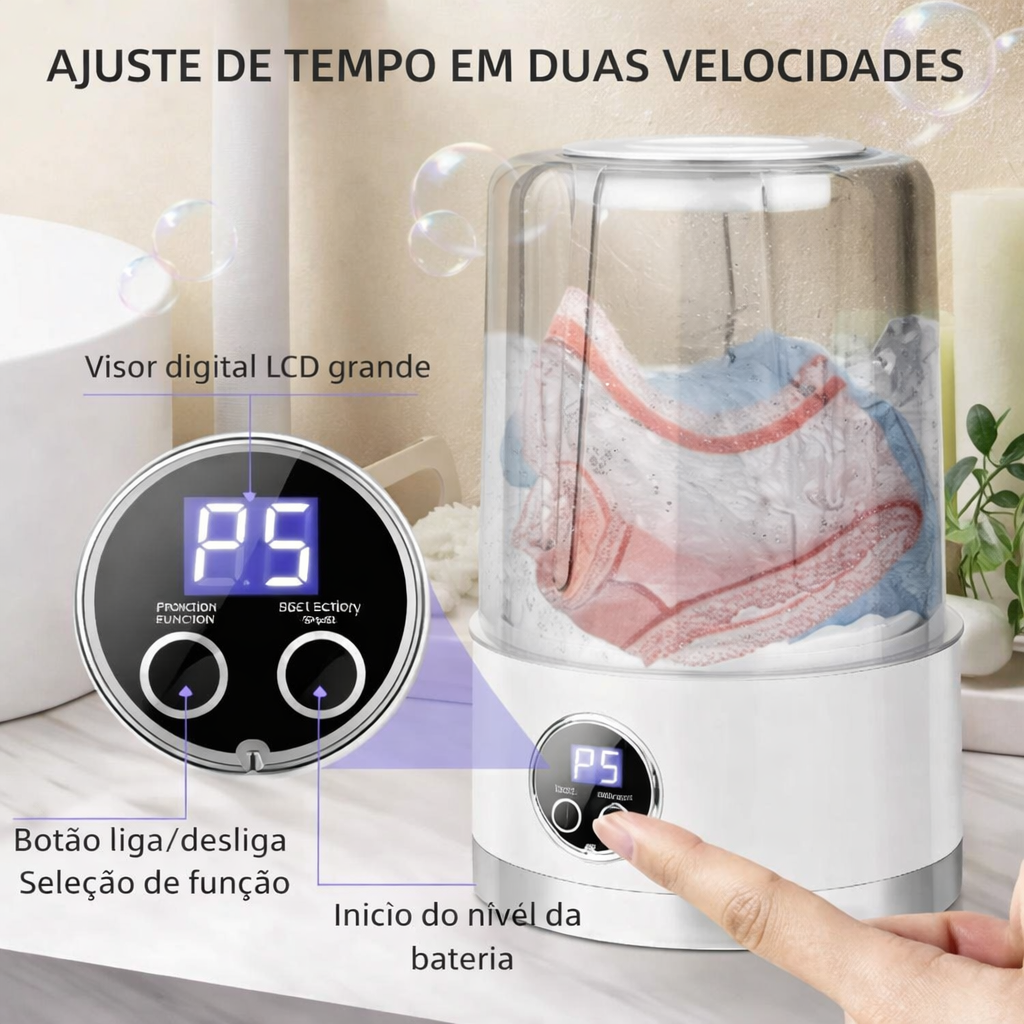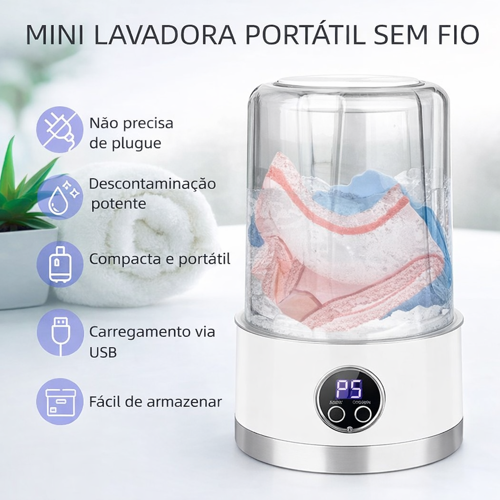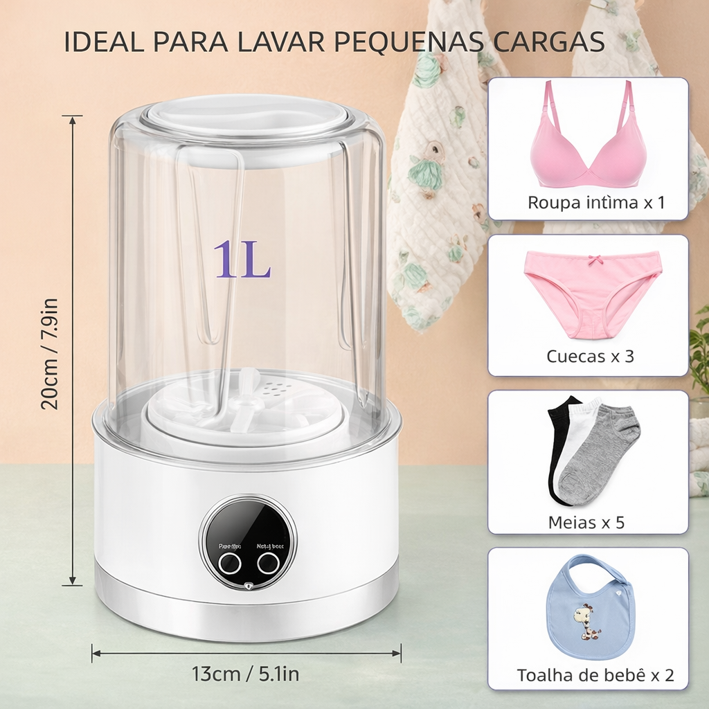 A Mini Lavadora Portátil é a solução perfeita para quem busca praticidade no dia a dia. Compacta, eficiente e fácil de usar, ela lava pequenas peças de roupa em poucos minutos, economizando água, energia e esforço. Ideal para lavar roupas íntimas, meias, panos de prato, roupas de bebê e peças delicadas, mantendo tudo sempre limpo sem precisar usar a máquina grande.