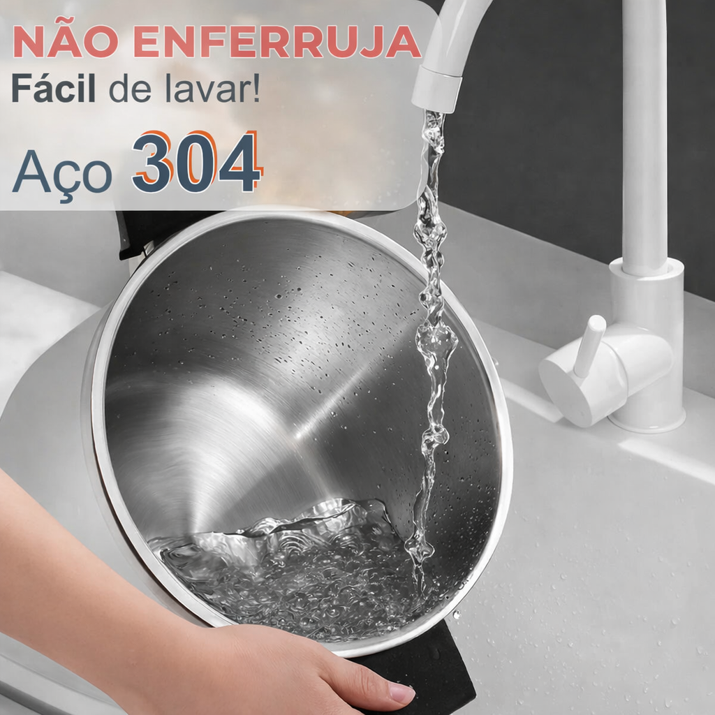 Sim. A panela é fabricada em alumínio de alta espessura ou aço inox 304 reforçado (dependendo do modelo), garantindo maior durabilidade e resistência ao uso frequente.