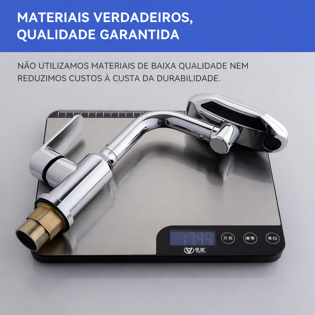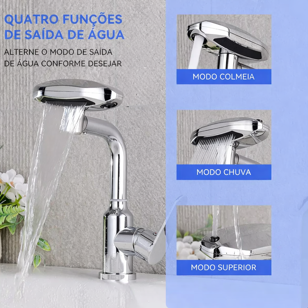 Transforme sua rotina com a torneira que une design moderno, controle preciso e versatilidade total. A Torneira Monocomando 4 Modos foi desenvolvida para quem busca praticidade sem abrir mão da elegância.
