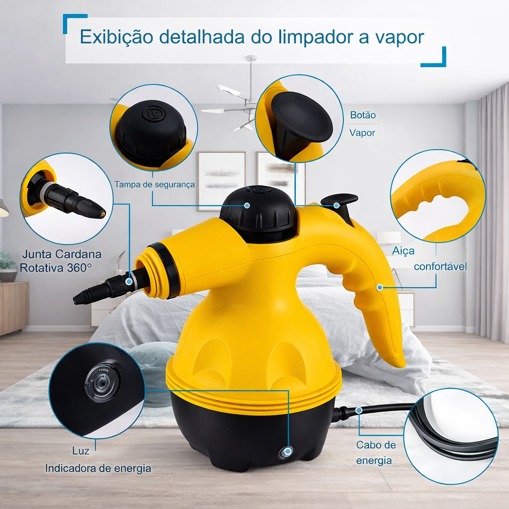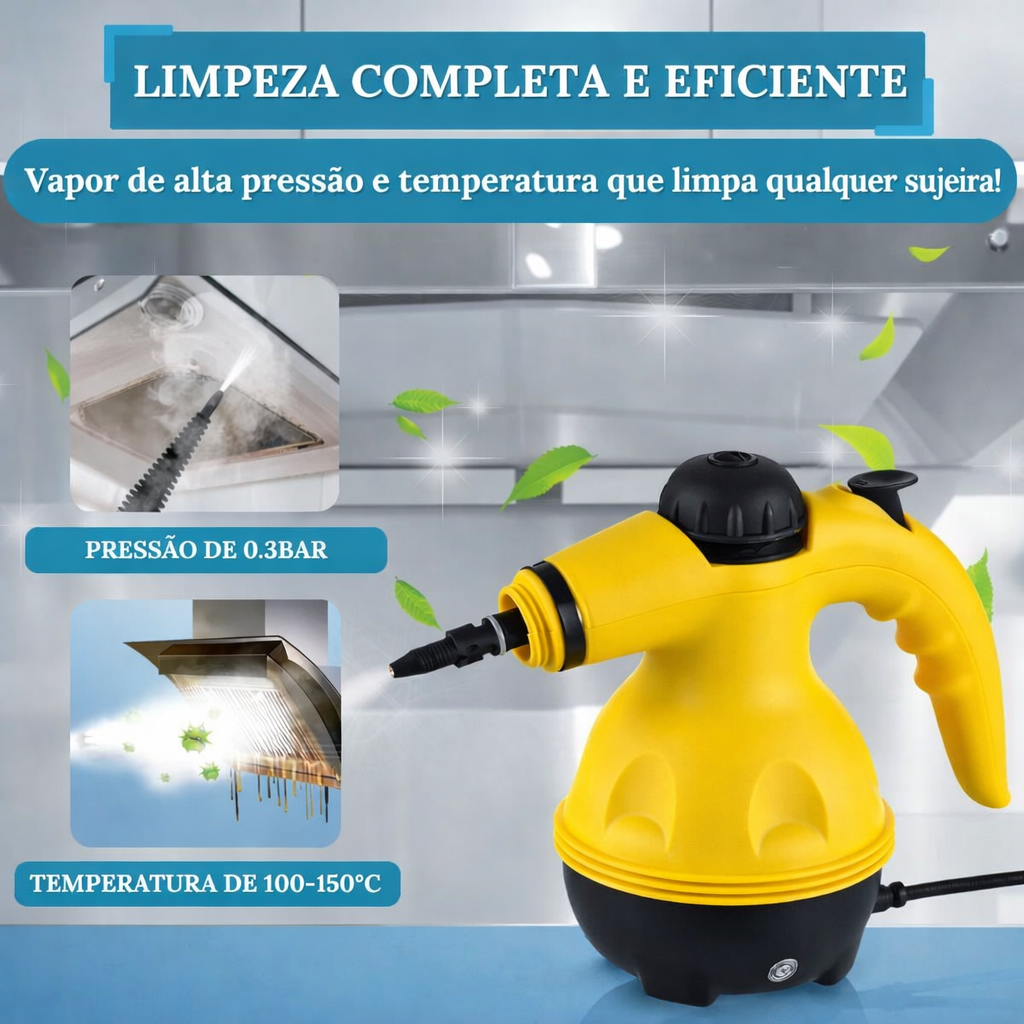 Transforme a limpeza da sua casa com o Higienizador a Vapor 1200W! Ideal para quem busca praticidade e eficiência, ele elimina gorduras, manchas, poeira e bactérias apenas com o poder do vapor — sem produtos químicos.